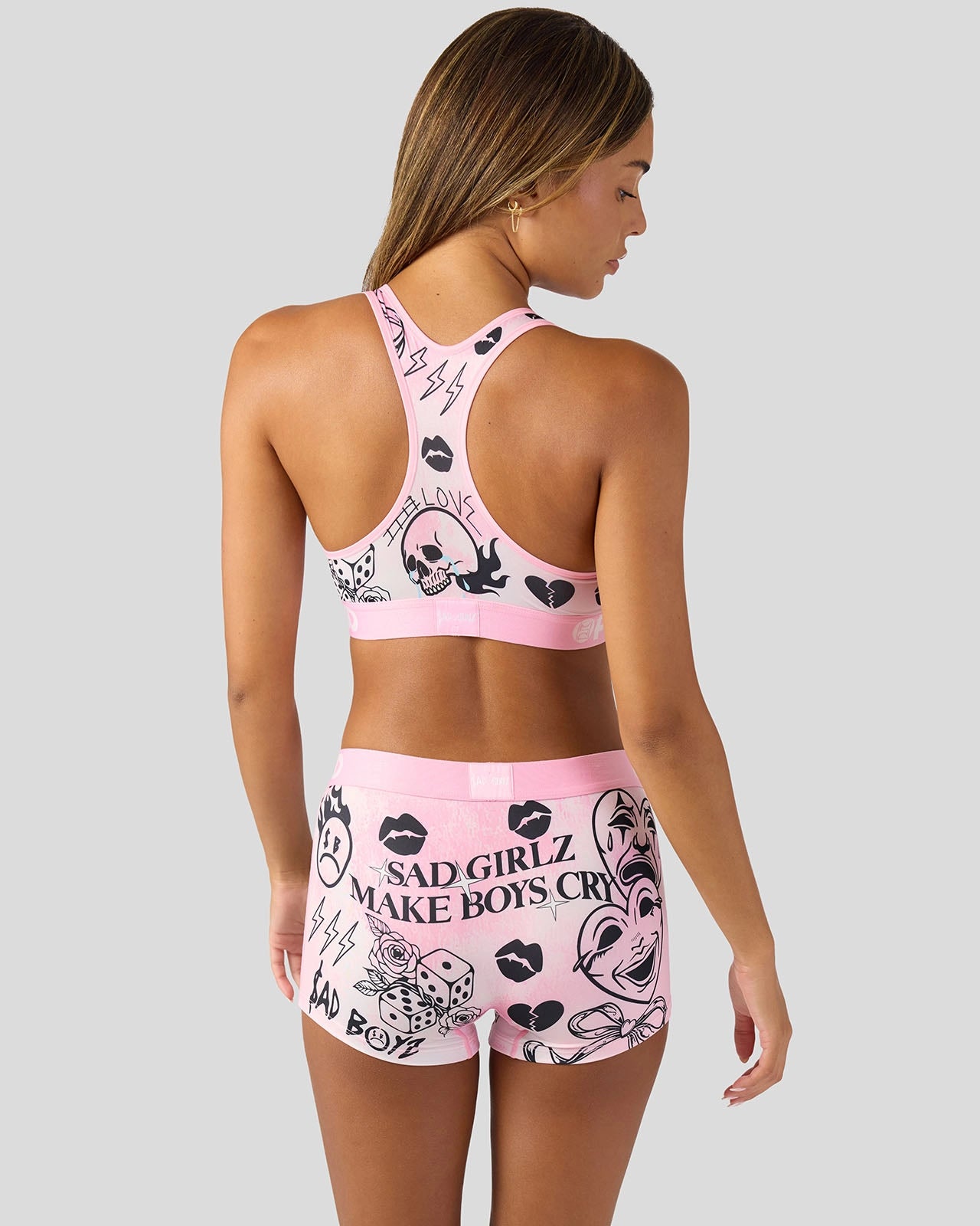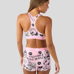 Introducing Sad Girlz x PSD. As an extension of Junior H’s Sad Boyz. Sad Girlz carries the same raw emotion and attitude. Owning heartbreak. humor. and confidence. and built for those who laugh. cry. and thrive through it. the Laugh and Cry Sports Bra is made from a silky poly-blend that’s breathable yet slightly compressive. bringing you the comfort and support you need for everything you get into.