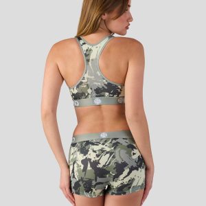 The Sage Camo Sports Bra is made from a silky poly blend that’s breathable yet slightly compressive. bringing you the comfort and support you need for everything you get into.