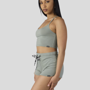 Your downtime just got a whole lot more comfortable (and cuter). Made of a super soft modal blend. the Sage Modal Cami Sleep Set includes a matching spaghetti strap cropped tank and dolphin hem shorts.