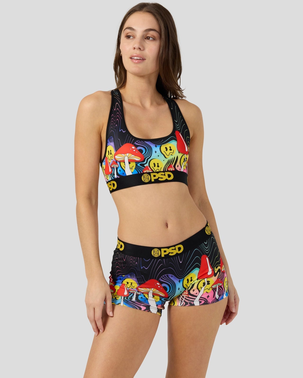 Take a trip in this new psychedelic print. The Shroom Melt Sports Bra is made from a silky poly blend and is breathable yet slightly compressive. bringing you the comfort and support you need for everything you get into.