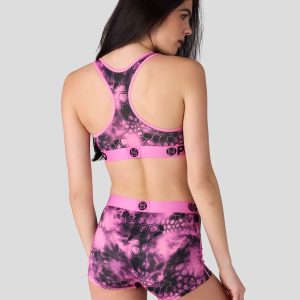 The Snake Dye Sports Bra is made from a silky poly blend with a comfortable full coverage. keep-you-in fit. The PSD boy shorts are perfect for everyday wear and working out.