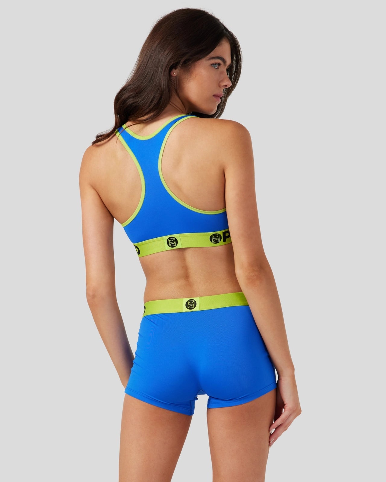 Feel your most energized in our newest solid. Electric. Featuring a bright blue with a color-blocked band. we can’t prove it but we have a feeling this color will give you a bigger boost than your morning coffee. Made from a silky poly blend with a comfortable full coverage. keep-you-in fit. the PSD boyshorts are perfect for everyday wear and working out. This style is available in sizes XS – 5XL.
