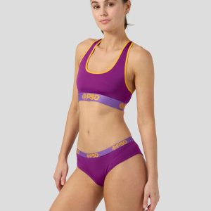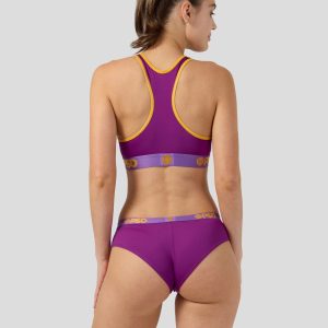 It’s time to liven up your solids with this brand-new color-blocked hue. Plum Pop. Made of our silky. soft-to-the-touch poly blend. the PSD Cheeky is lightweight and breathable with a playful. flattering fit.