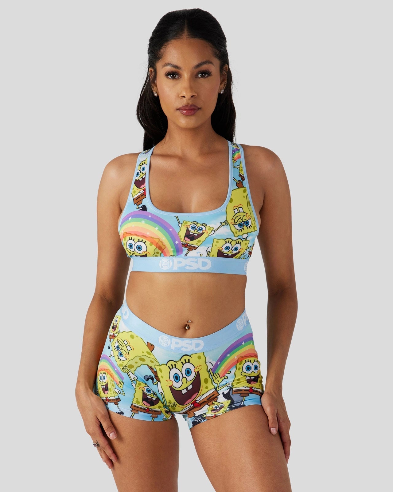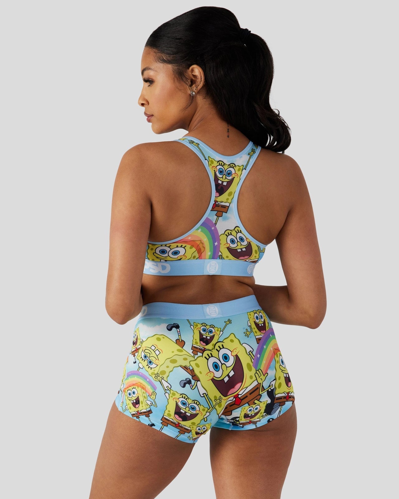 Let your imagination sore in this new drop from SpongeBob SquarePants x PSD. The PSD Imagination Sports Bra is made with our silky poly blend and is breathable yet slightly compressive. bringing you the comfort and support you need for everything you get into.