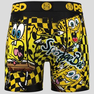 The Splat briefs from SpongeBob SquarePants x PSD include our ultra-comfortable Signature WaistBand. a breathable MicroMesh pouch. and four-way stretch. The PSD 5 Mid Length Briefs won’t roll or ride and were built for everything. from everyday wear to your toughest workouts.