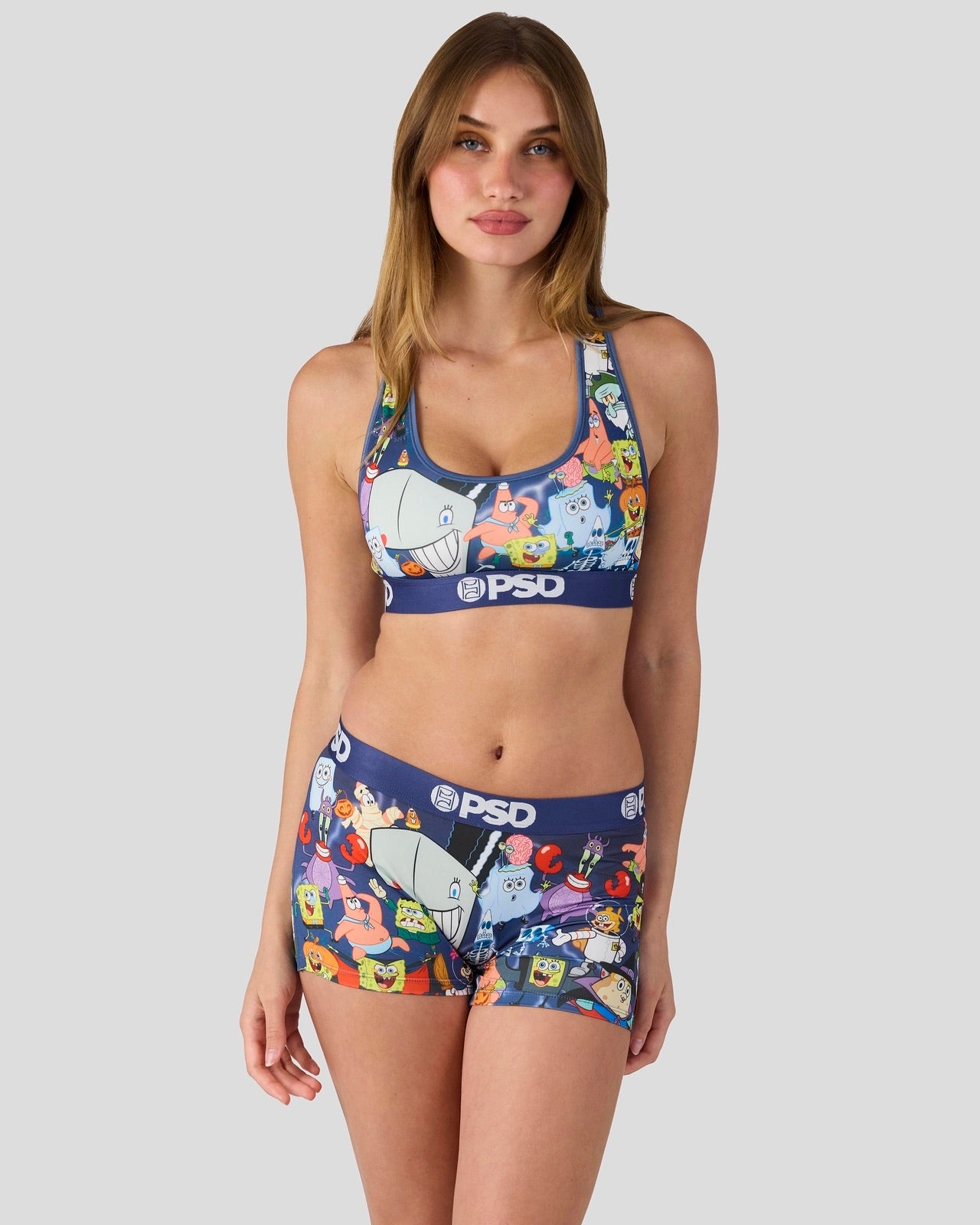 Things are getting spooky under the sea. This Halloween-ready style from SpongeBob SquarePants brings the whole crew together in full costume chaos. The SpongeBoo Sports Bra is made from a silky poly blend that’s breathable yet slightly compressive. bringing you the comfort and support you need for everything you get into.