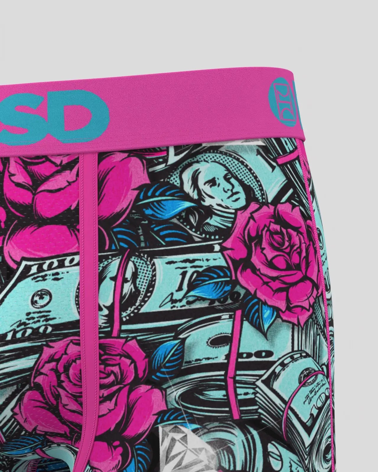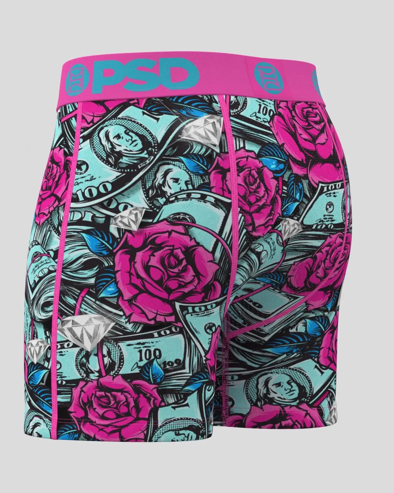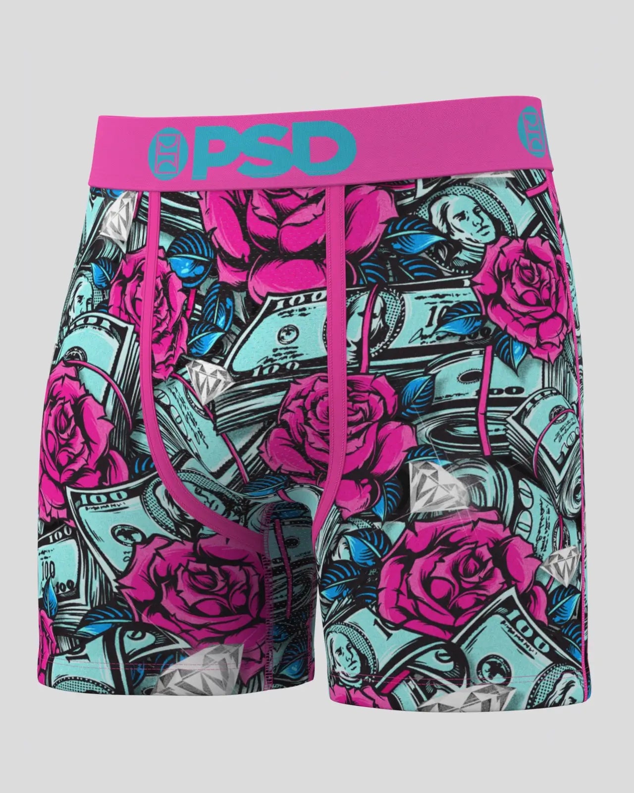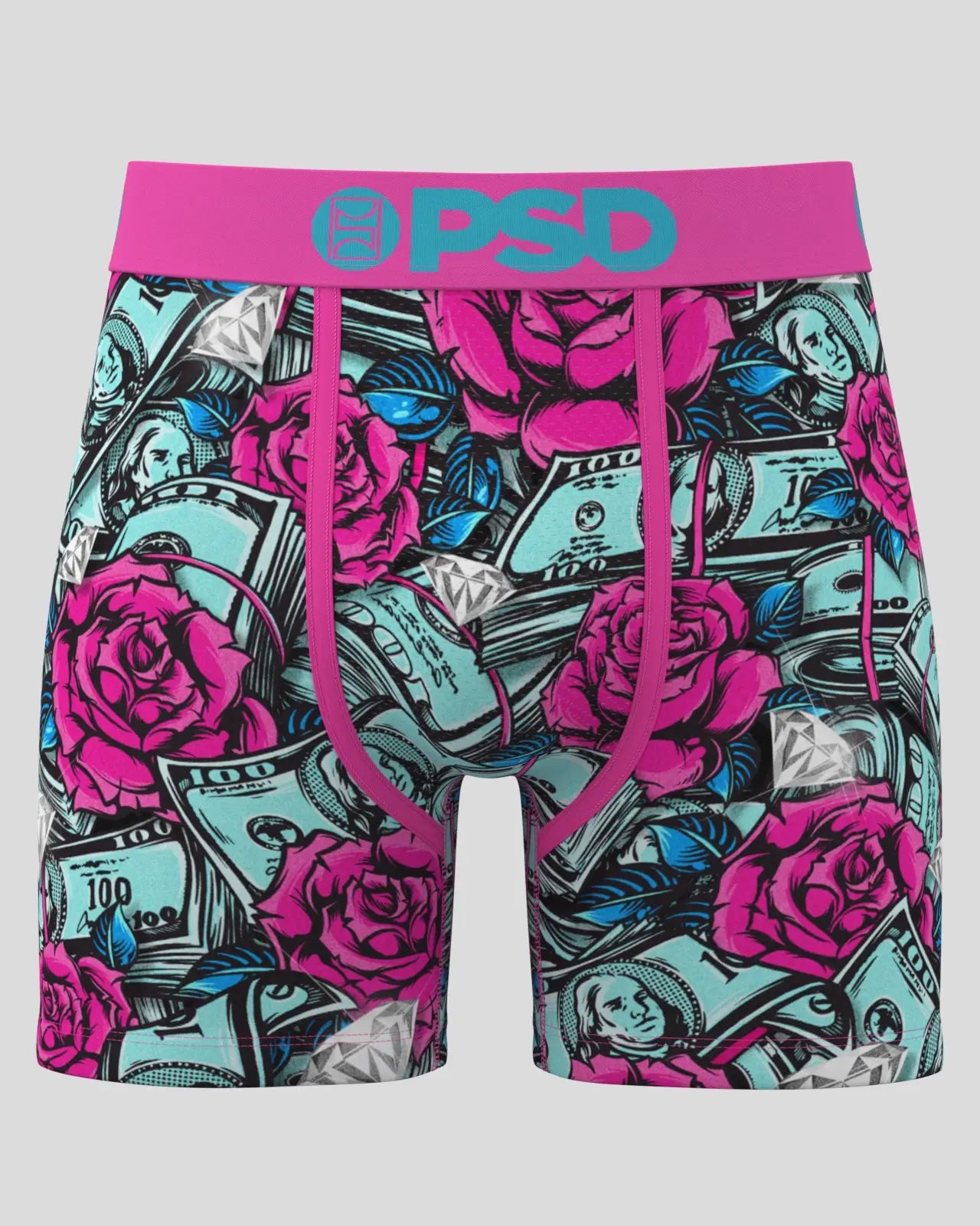 The Stacked Roses briefs include our ultra-comfortable Signature WaistBand. a breathable MicroMesh pouch. and four-way stretch. The PSD 5 Mid Length Briefs won’t roll or ride and were built for everything. from everyday wear to your toughest workouts.