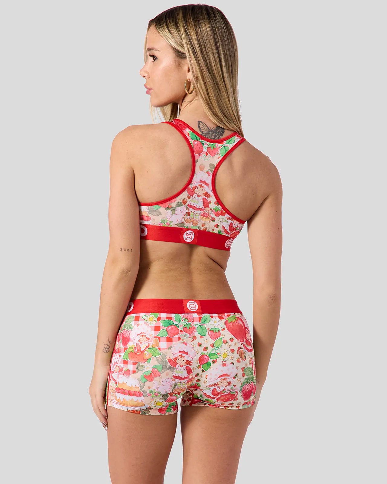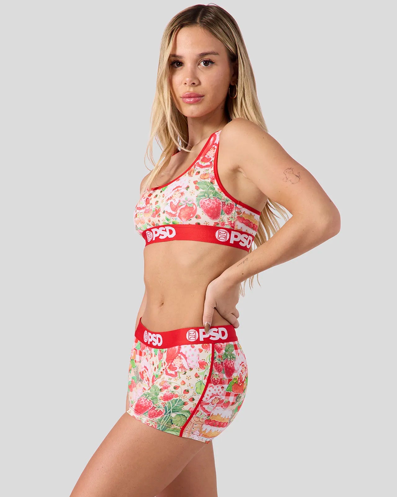 From Strawberry Shortcake x PSD. this new drop captures the sweet. playful spirit of Strawberry Shortcake through a vibrant collage-meets-scrapbook aesthetic. The Berry Fields Forever Boy Short is made from a silky poly-blend with a comfortable full-coverage. keep-you-in fit. The PSD boy shorts are perfect for everyday wear and working out.