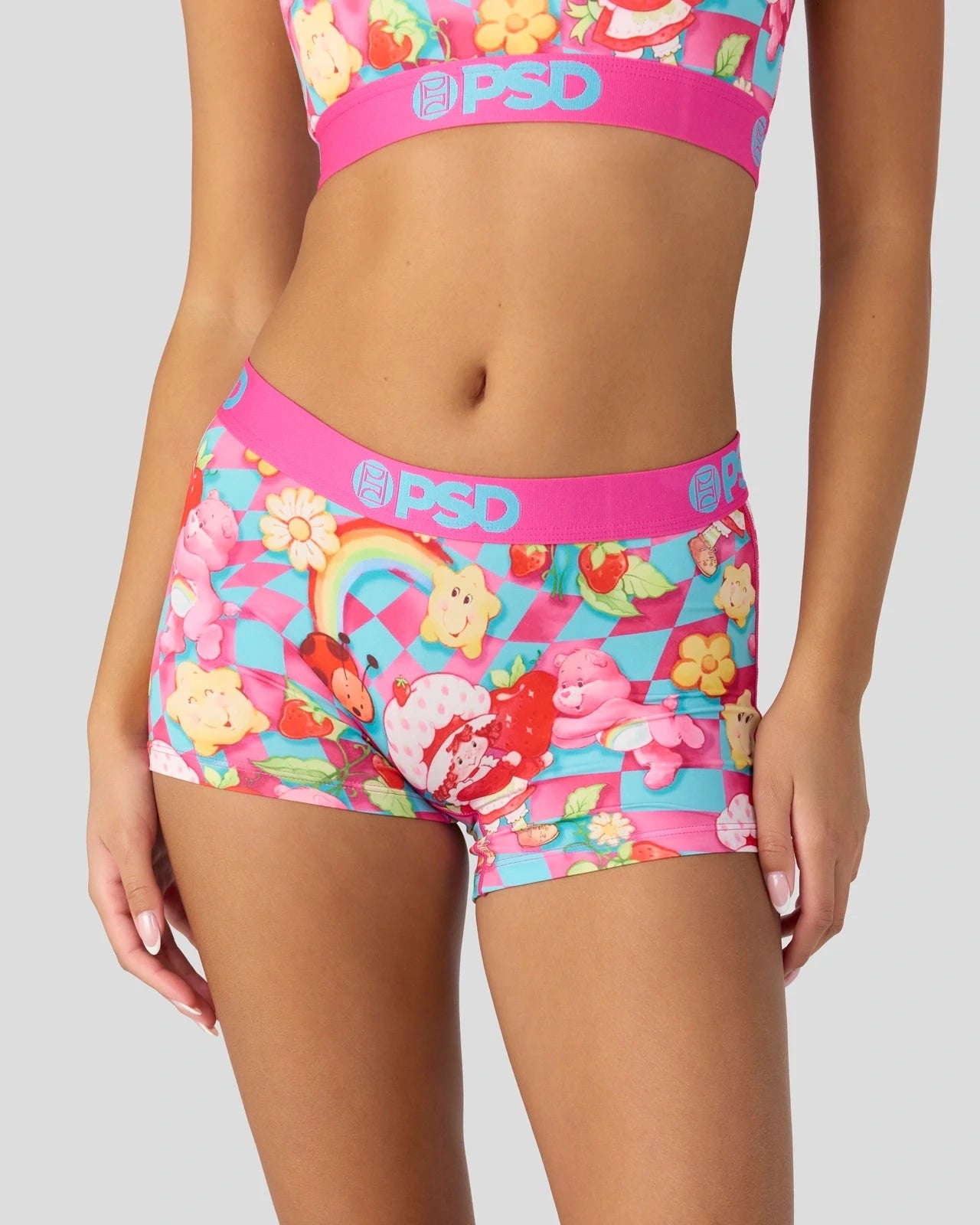This Strawberry Shortcake x Care Bears x PSD is the super sweet crossover you’ve been dreaming of. The Strawberry Shortcake x Care Bears Trippin Boy Short is made from a silky poly blend with a comfortable full coverage. keep-you-in fit. The PSD boy shorts are perfect for everyday wear and working out.
