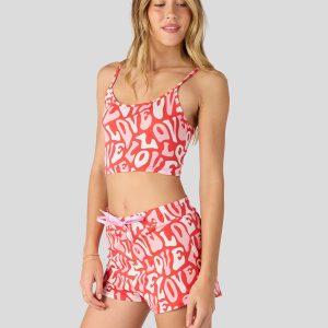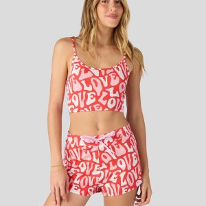 Your downtime just got a whole lot more comfortable (and cuter). Made from a super-soft modal blend. the Sweet Love Modal Cami Sleep Set includes a matching spaghetti-strap cropped tank and dolphin-hem shorts.