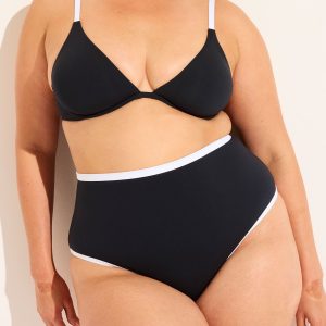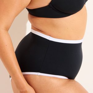 A super sleek high-waist swim bottom that keeps it all hugged and smooth. Figure flattering rise hits around the navel. moderate coverage bum accentuates your curve.
