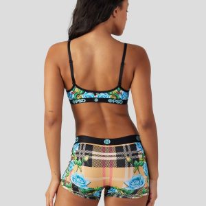 Preppy meets floral with this new woman’s look that features a designer-inspired plaid print. Made of soft and silky fabric. the Tartan Floral V-Neck Bralette is light and breathable so you barely feel like it’s there. It gives you full coverage and medium support for those days when you need to wear a bra but really don’t want to.