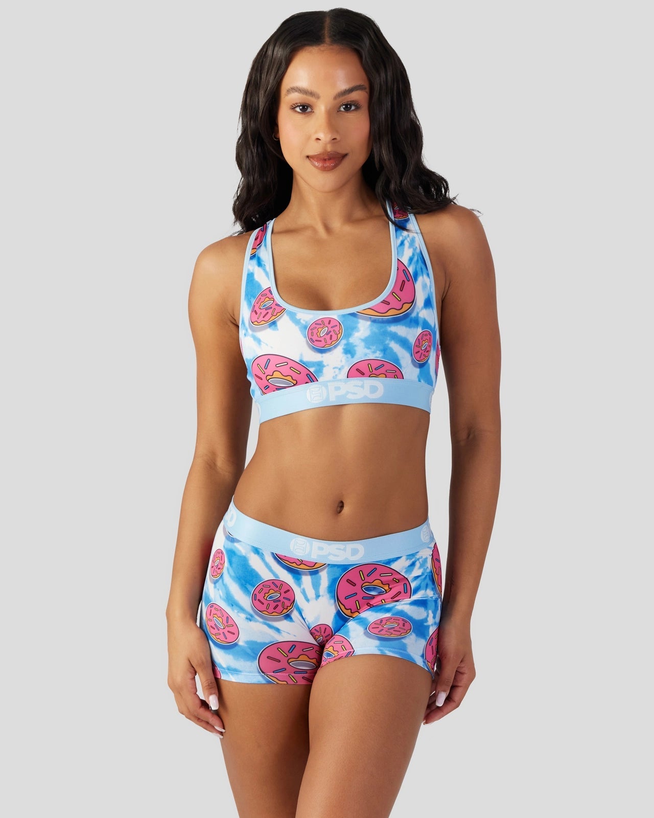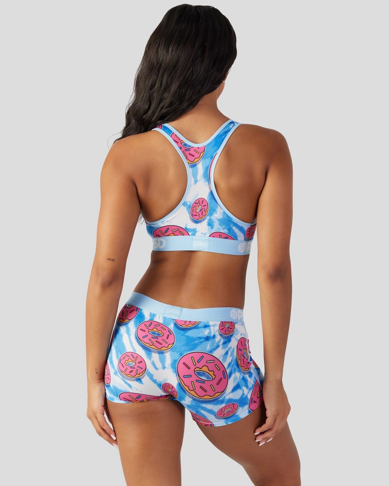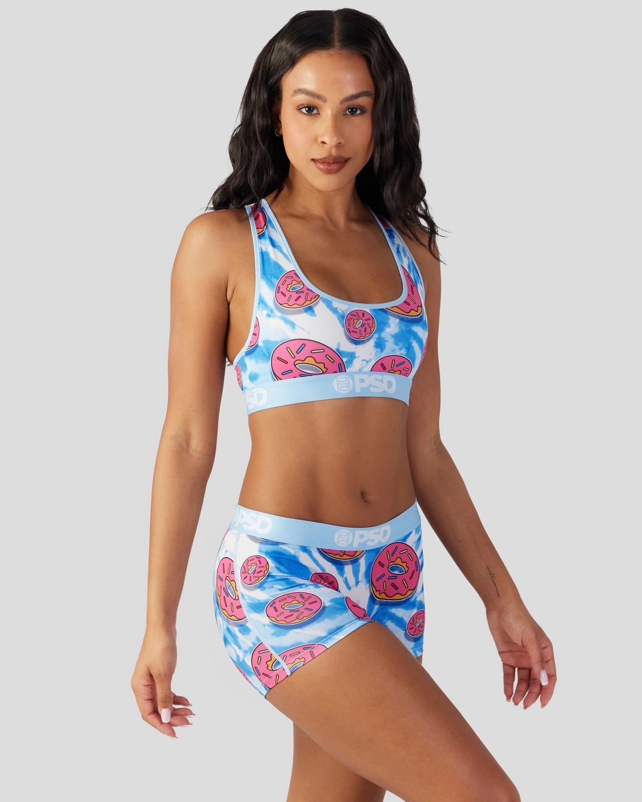 Mmmmm. donuts *insert drooling emoji*. Featuring Homer’s favorite food. the D’oh! Nuts Sports Bra from The Simpson x PSD is made from a silky poly blend with a comfortable full coverage. keep-you-in fit. The PSD boy shorts are perfect for everyday wear and working out.