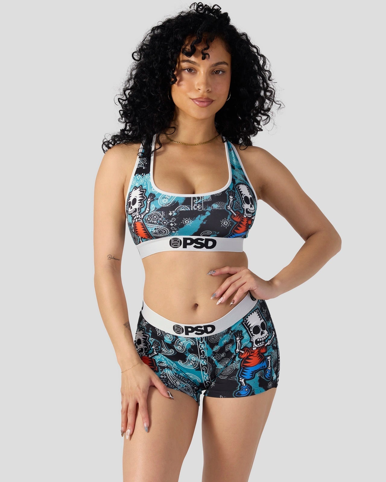 New from The Simpsons x PSD. The D’oh of the Dead Sports Bra is made from a silky poly blend with a comfortable full coverage. keep-you-in fit. The PSD boy shorts are perfect for everyday wear and working out.