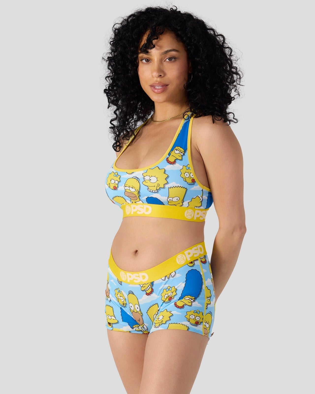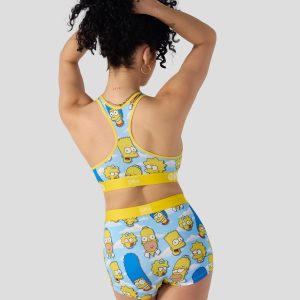 New from The Simpsons x PSD. The Simpsons Head Sports Bra is made from a silky poly blend with a comfortable full coverage. keep-you-in fit. The PSD boy shorts are perfect for everyday wear and working out.
