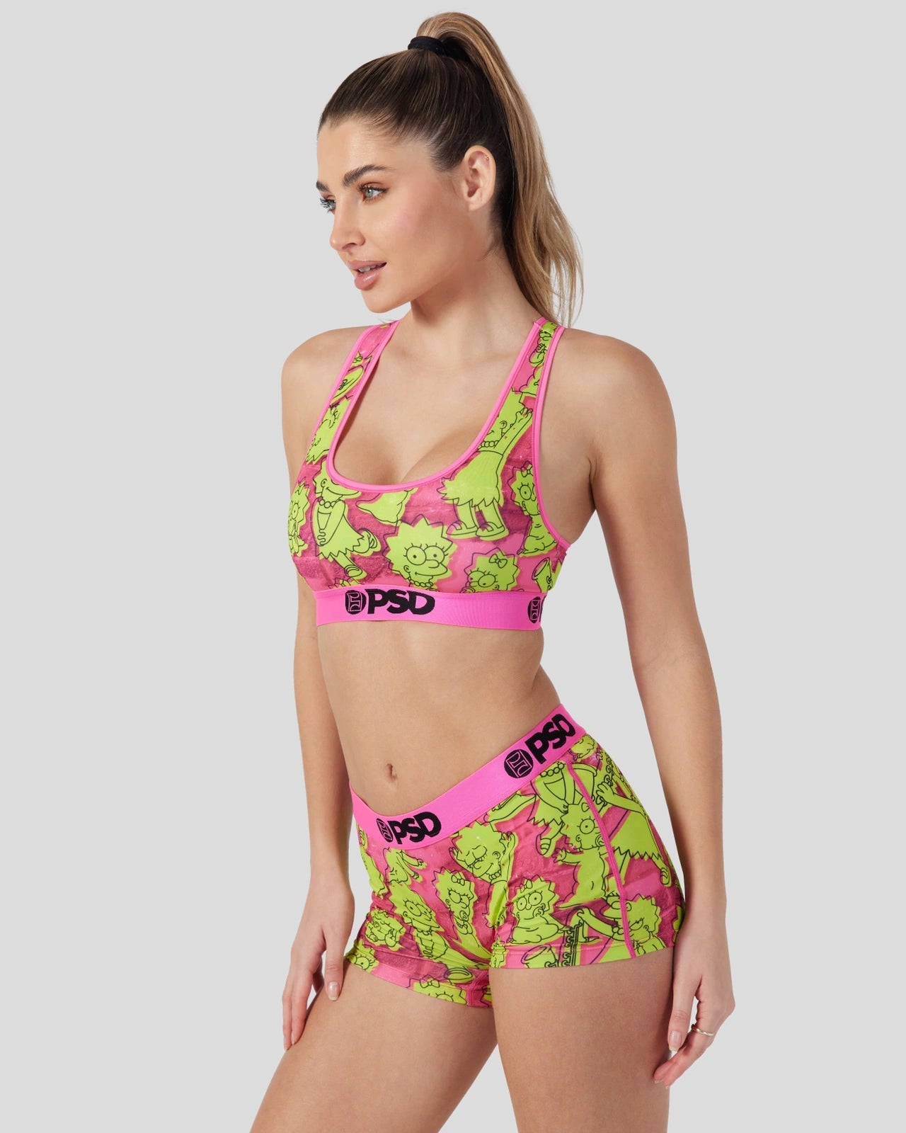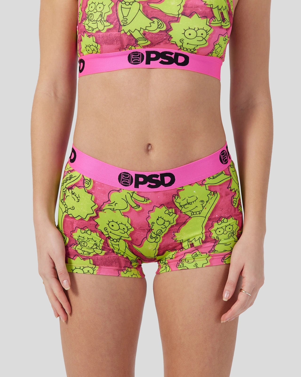 This The Simpsons x PSD drop is for the girls! The Simpson Sisters Boy Short is made from a silky poly blend with a comfortable full coverage. keep-you-in fit. The PSD boy shorts are perfect for everyday wear and working out.