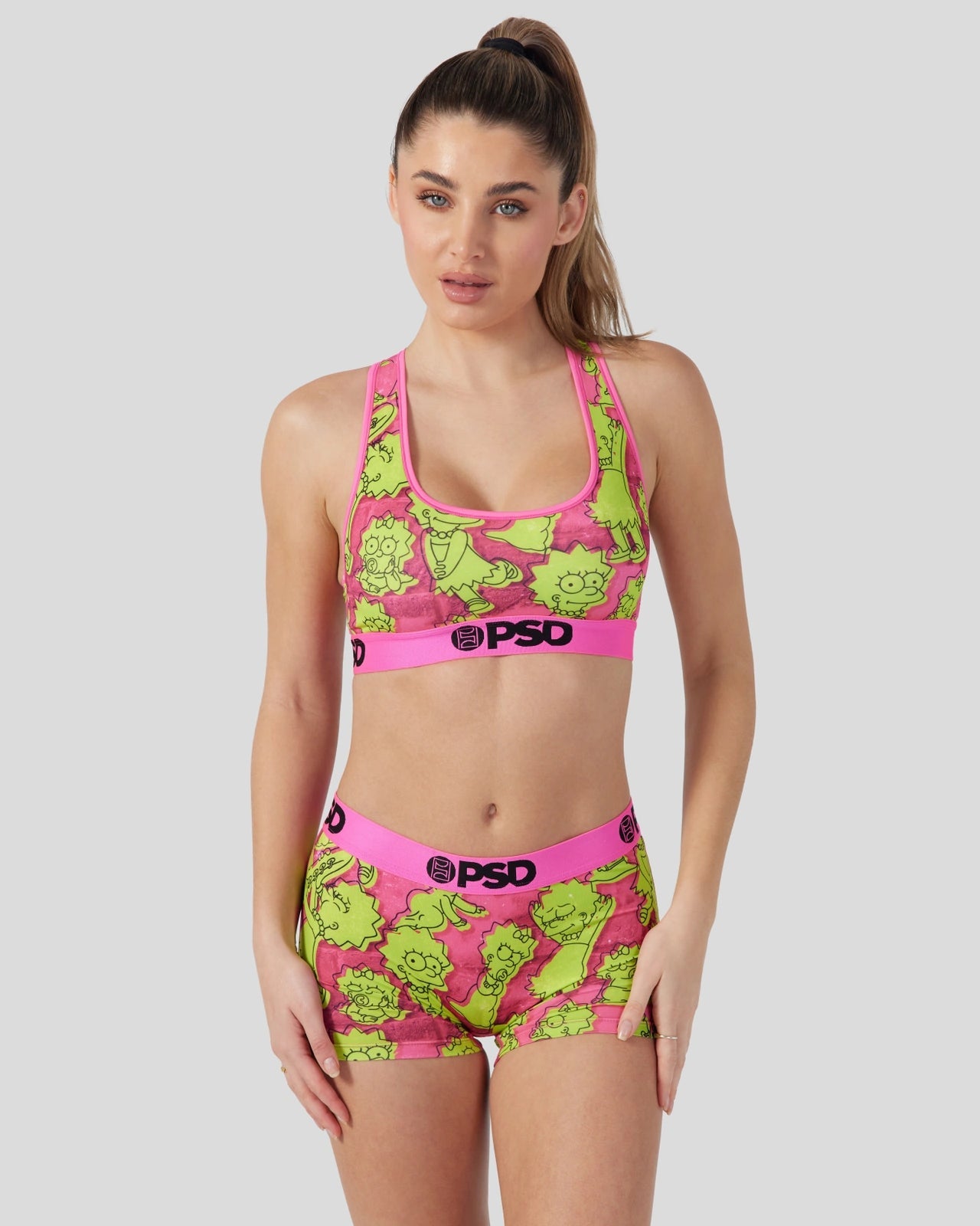 This The Simpsons x PSD drop is for the girls! The Simpson Sisters Sports Bra is made from a silky poly blend and is breathable yet slightly compressive. bringing you the comfort and support you need for everything you get into.
