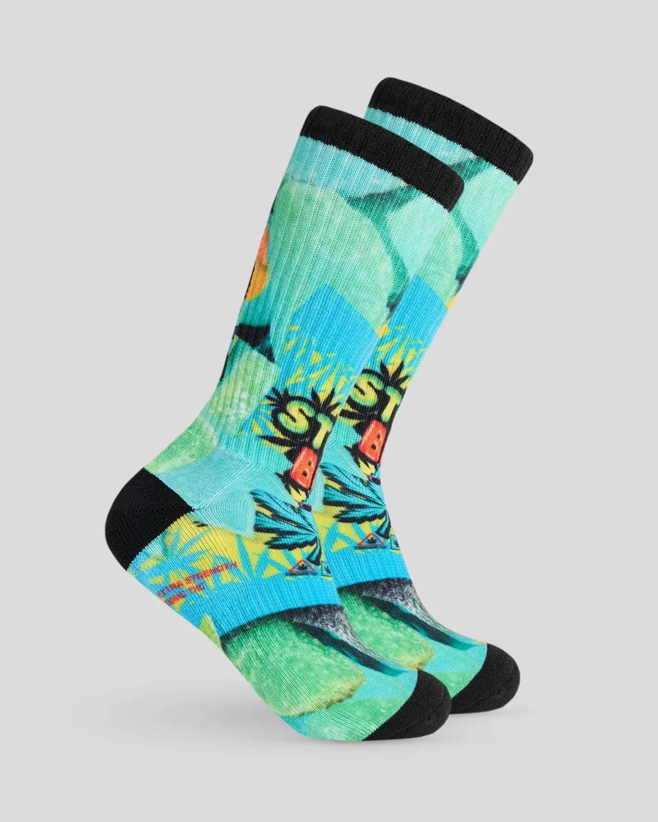 Give your ‘fit a little something extra with our brand-new printed novelty crew socks. Made of a lightweight poly blend. they’re soft. stretchy. and breathable. One size fits most for men and women.
