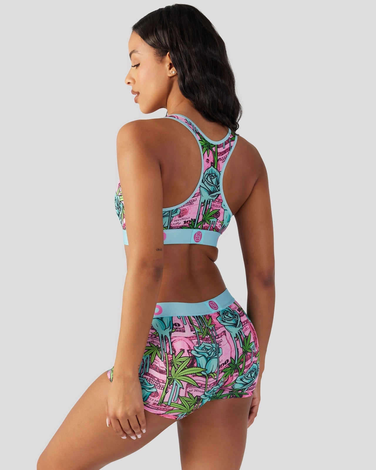 If you’re a Warface fan. you don’t want to miss this new print. Featuring money. roses. and everyone’s favorite greens. the Warface High Sports Bra is made from a silky poly blend and is breathable yet slightly compressive. bringing you the comfort and support you need for everything you get into.